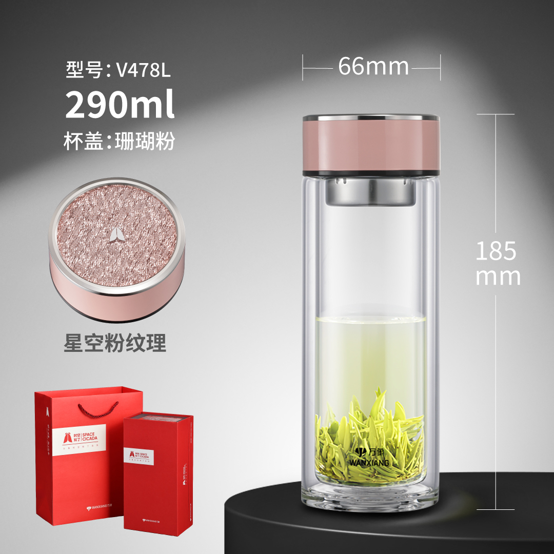 時空知了雙層玻璃杯 V468L 臟粉色 青瓷色 淺米黃:¥119